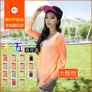 簡介: 建議零售價 ¥19.00 貨號 FSY-55 產地 義烏 主圖來源 實拍無模特 品牌 防曬衣 貨源類別 現貨 是否庫存 否 圖案 純色 風格 韓版 版型 寬松型 組合形式 單件套 厚薄 薄款 衣長 中長款(65cm<衣長≤80cm) 袖長 九分 袖型 常規袖 領型 V字領 流行元素 防曬衣,熒光色 工藝 針織 上市年份/季節 2014夏季 顏色 白色,紫色,綠色,黑色,粉色,湖藍,寶藍,亮黃,嫩粉,裸色,熒光黃,玫紅,橙色,西瓜紅,熒光粉 尺碼 均碼 成分 納米絲 面料 納米絲