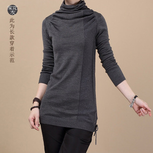【精品推薦】供應時尚修身高領女針織衫毛衣 堆堆領長款羊毛衫 /