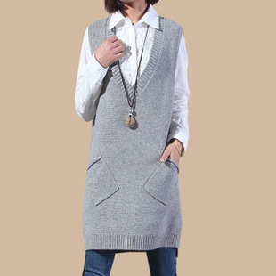 春季新款韓版女裝百搭馬甲女背心外套中長款寬松大碼V領針織毛衣 /