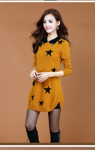 2015爆款韓版女式貂絨衫羊絨毛衣小翻領提花五角長款大碼打底衫 /
