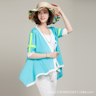 2015夏季新款簡約拼色中袖針織開衫女式針織棉雪紡衫空調衫批發 /