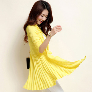 2015夏季新款女裝中長款針織開衫薄外套修身韓版女式 空調防曬衫 /