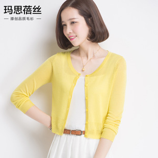 簡介: 建議零售價 ¥158.00 貨號 H8819 產地 桐鄉 品牌 瑪思蓓絲 主圖來源 實拍有模特 貨源類別 現貨 風格 韓版 圖案 純色 毛種類 混紡類 紗線種類 桑蠶絲 含毛量 50%以下 毛線粗細 普通毛線 毛衫工藝 針織 厚薄 薄 款式 開衫 組合形式 單件套 版型 修身型 衣長 普通款(50cm<衣長≤65cm) 衣門襟 單排扣 領型 圓領 袖長 長袖 袖型 常規袖 流行元素 鏤空 工藝 勾花鏤空 上市年份/季節 2015夏季 顏色 白色,黃色,黑色,米色,水藍色 尺碼 M,L,XL