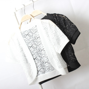 夏季防曬透明小披肩 時(shí)尚鏤空短袖小坎肩蕾絲開衫女士百搭薄外套 /