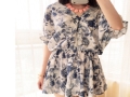 2015夏裝新款韓版清新印花棉麻蝙蝠袖娃娃衫連衣裙女 /