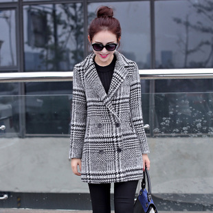 秋季時尚新款女式大衣 高檔混紡毛呢格子大衣女 韓版修身加厚大衣 /