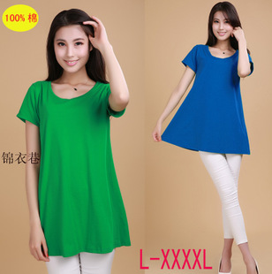廠家批發女圓領套頭中長款簡約打底衫 純棉大碼寬松短袖T恤新款 /