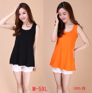 2015新款純棉寬松大碼吊帶背心加肥加大胖吊帶衫糖果色 顯瘦背心 /