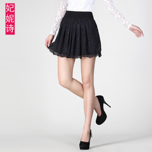 春夏裝純色A字蕾絲短裙半身裙修身蓬蓬裙大碼女裝批發 /