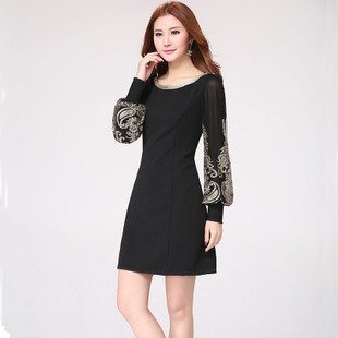 2015新款韓版春夏秋季女裝中長款蕾絲修身打底長袖連衣裙 /