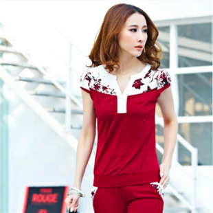 2015夏季新款短袖休閑套裝潮時尚印花衛衣七分褲運動服套裝 /