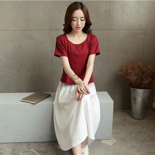 簡介: 貨號 89878 產地 廣州 主圖來源 其他來源 貨源類別 現貨 是否庫存 是 庫存類型 整單 風格 韓版 圖案 純色 款式 裙套裝 上衣款式 T恤 上衣袖長 短袖 裙長 中長裙 流行元素 純色 上市年份/季節 2015夏季 顏色 上白上紅,上紅下白,上米下綠,上綠下米 尺碼 M,L,XL,XXL 面料 亞麻