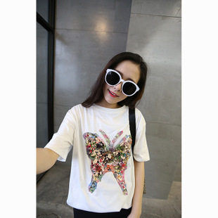 實拍】 1336#夏季新款彩色亮片蝴蝶蝙蝠袖寬松大件顯瘦中長T恤 /