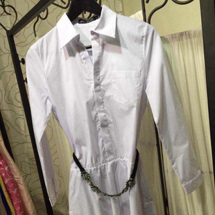 廠家直銷2015春裝新款歐美風純色 明星款氣質襯衫裙 翻領長袖 /