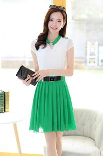 2015夏季新款韓版大碼假兩件裙子女裝修身雪紡百褶裙氣質(zhì)連衣裙女 /