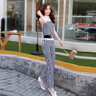 廠家直銷(xiāo)女款連體褲2015條紋韓版潮無(wú)袖修身系帶顯瘦時(shí)尚長(zhǎng)褲女 /