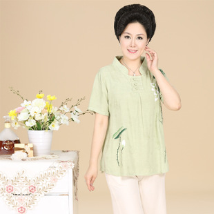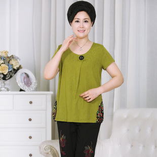 15新款中老年女裝夏季加大碼短袖t恤套裝中年媽媽裝棉麻套裝批發(fā) /