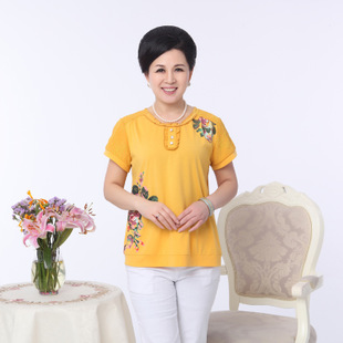 中老年女裝夏季時尚大碼雪紡衫短袖 圓領印花女裝T恤衫媽媽裝批發(fā) /
