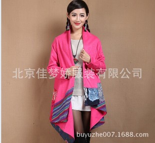 2014新款民族風花布拼接刺繡披肩開衫毛呢外套 /