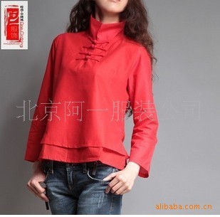 中國民族風 立領盤扣雙層長袖上衣襯衣春秋 /