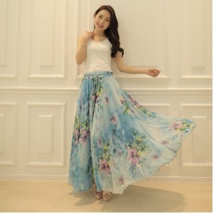 實拍 2014夏裝新款半身長裙 優雅雪紡長裙 波西米亞風大擺沙灘裙 /