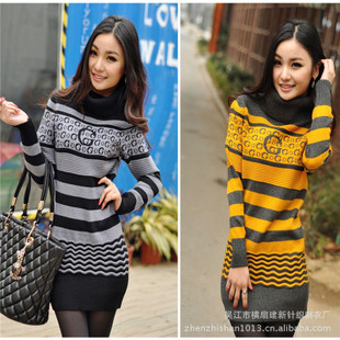 2013新款 韓版字母G條紋套頭高領(lǐng)毛衣 打底衫女裝針織衫秋冬加厚 /