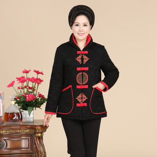 時尚立領媽媽裝唐裝棉衣批發 2014新品中老年女式拼接棉衣加厚 /