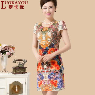 中老年女裝夏裝新款真絲冰絲連衣裙大碼中年媽媽裝夏季短袖長裙子 /