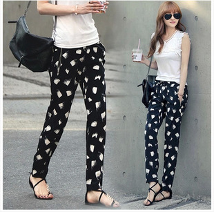 A8157#歐美新款女褲 寬松大碼雪紡印花哈倫褲 /