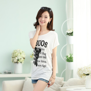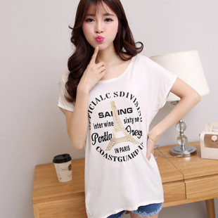 2015夏季新款 短袖女t恤 韓版鐵塔字母純棉圓領寬松中長款短袖女 /