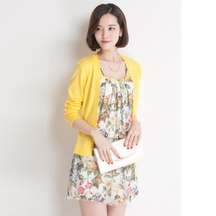 2015春季新款假兩件針織開衫 甜美氣質印花中長款針織外套 女 /
