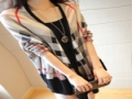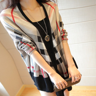 2015新款歐美風蝙蝠袖斗篷針織衫女式披肩格子寬松開衫 /