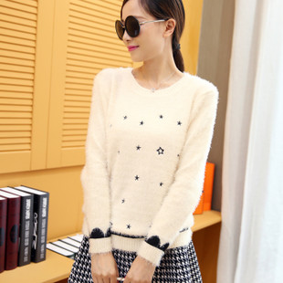 2015秋裝新款套頭馬海毛小清新星星圖案舒適百搭女裝毛衣366 /