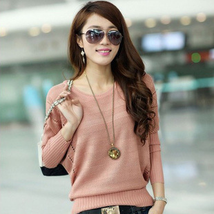 2015新款時尚韓版蝙蝠衫打底毛衣蝙蝠袖鏤空針織衫批發 /