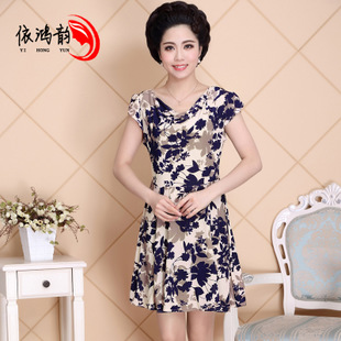 時尚熱賣大碼媽媽裝夏裝新款短袖連衣裙中老年女裝堆堆領長裙批發 /