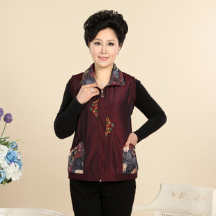 中老年馬甲背心 秋裝爆款拼色繡花馬甲老年人服裝 批發中年女 /
