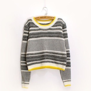 簡介: 貨號 T074 產地 桐鄉濮院 主圖來源 實拍無模特 貨源類別 現貨 是否庫存 是 庫存類型 整單 毛線粗細 普通毛線 毛衫工藝 針織 風格 韓版 圖案 格紋 款式 套頭 組合形式 單件套 版型 直筒型 衣長 普通款(50cm<衣長≤65cm) 領型 圓領 袖型 常規袖 袖長 長袖 厚薄 適中 流行元素 撞色 上市年份/季節 2014秋季 顏色 黃領黑 尺碼 均碼 毛種類 混紡類 含毛量 80%以上 紗線種類 羊毛/腈綸