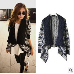簡介: 建議零售價 ¥128.00 貨號 1819 產地 桐鄉濮院 主圖來源 實拍有模特 貨源類別 現貨 是否庫存 否 毛線粗細 粗毛線 毛衫工藝 針織 風格 韓版 圖案 提花 款式 開衫 組合形式 單件套 版型 寬松型 衣長 普通款(50cm<衣長≤65cm) 領型 翻領 袖型 蝙蝠袖 袖長 長袖 厚薄 適中 流行元素 不規則 工藝 提花 上市年份/季節 2015春季 面料名稱 仿兔毛 主面料成分 兔毛 主面料成分的含量 80(%) 顏色 黑色,米色,藍色 尺碼 均碼 毛種類 混紡類 含毛量 60%以上 紗線種類 兔羊毛混紡