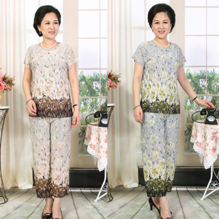2015年新款媽媽裝中老年服裝中年女裝夏裝短袖套裝奶奶倆件套 /