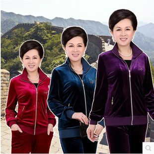 新款大碼休閑媽媽裝天鵝金絲絨運動服套裝女春秋中老年人女裝 /