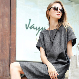2015春裝夏季新款歐美亞麻大碼女裝亞麻連衣裙顯瘦棉麻打底裙子 /