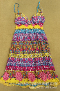 春夏新款韓版多彩花紋時尚吊帶外貿連衣裙 /