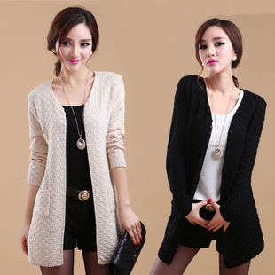 簡介: 建議零售價 ¥138.00 貨號 9912 產地 東莞大朗 品牌 彤興 主圖來源 實拍有模特 貨源類別 現貨 庫存類型 整單 是否庫存 是 風格 韓版 圖案 純色 毛種類 特色紗/花色紗 紗線種類 水晶絲 含毛量 60%以上 毛線粗細 普通毛線 毛衫工藝 針織 厚薄 適中 款式 開衫 組合形式 單件套 版型 修身型 衣長 中長款(65cm<衣長≤80cm) 衣門襟 單排扣 領型 V字領 袖長 長袖 袖型 常規袖 工藝 高溫定型 上市年份/季節 2015春季 顏色 白色,粉色,黃色,灰色,黑色,薄荷綠,寶藍,果綠,杏色,淺藍,瓜紅 尺碼 均碼