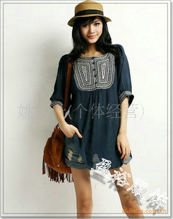 春夏新款時(shí)尚大碼女裝 胖mm大碼女裝 棉麻刺繡圓領(lǐng)上衣 女裝 現(xiàn)貨 /