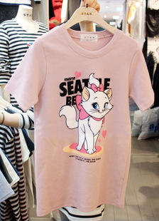 940#恩童 韓國東大門初春可愛貓咪印花圓領寬松短袖T恤 女 打底衫 /