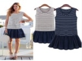 歐美女裝大賣2015新款 條紋拼接針織連衣裙 大碼背心吊帶裙 /