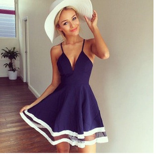 簡介: 建議零售價 ¥189.00 貨源類別 現貨 主圖來源 實拍有模特 風格 歐美 圖案 條紋 工藝 高溫定型 產地 廣州 款式 吊帶款 組合形式 單件 裙長 短裙 裙型 燈籠裙 腰型 中腰 衣門襟 拉鏈 流行元素 透視 上市年份/季節 2015春季 面料名稱 其它 是否庫存 是 顏色 白色,藍色 尺碼 S,M,L,XL 成分 其他 面料主材質含量 10%及以下 面料 雪紡 面料次要材質分類 無 成分含量 31%-50% 面料次要材質含量 無 面料主材質 錦綸 面料主材質分類 合成纖維