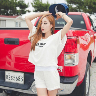 2015春夏新款寬松T恤大碼女裝字母短袖t恤短褲運動套裝休閑夏 /