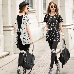 2015夏裝實拍新款大碼女裝個性中長款休閑短袖寬松T恤胖mm顯瘦潮 /