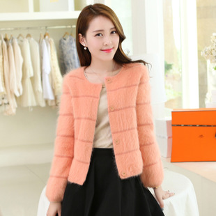 時尚貂絨外套 秋冬新款韓版水貂毛短款貂絨衫毛衣女開衫 /